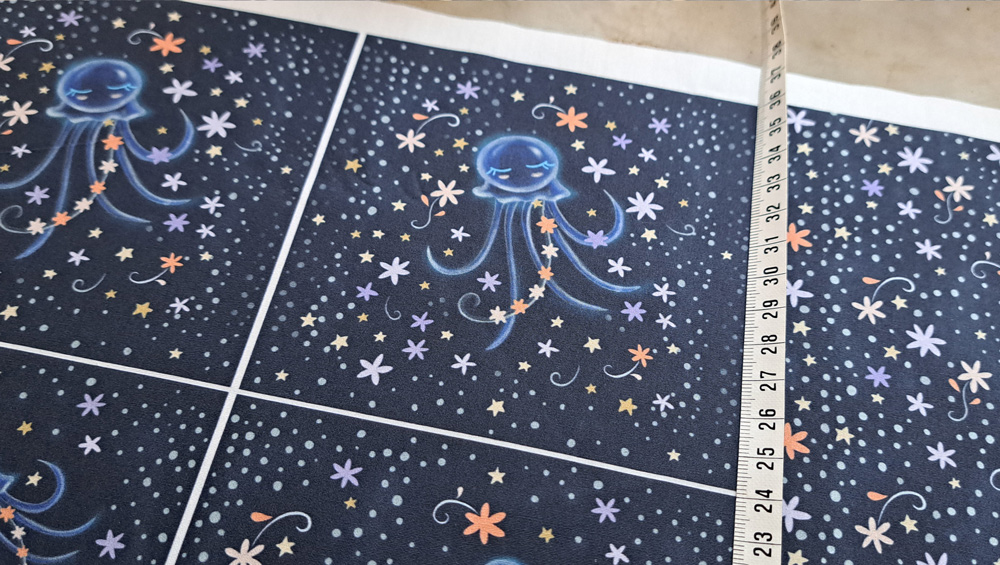 Nouveau – Coupon 12 x 12 cm – Popeline gots et oeko-tex imprimé en France – Méduse Fleurie
