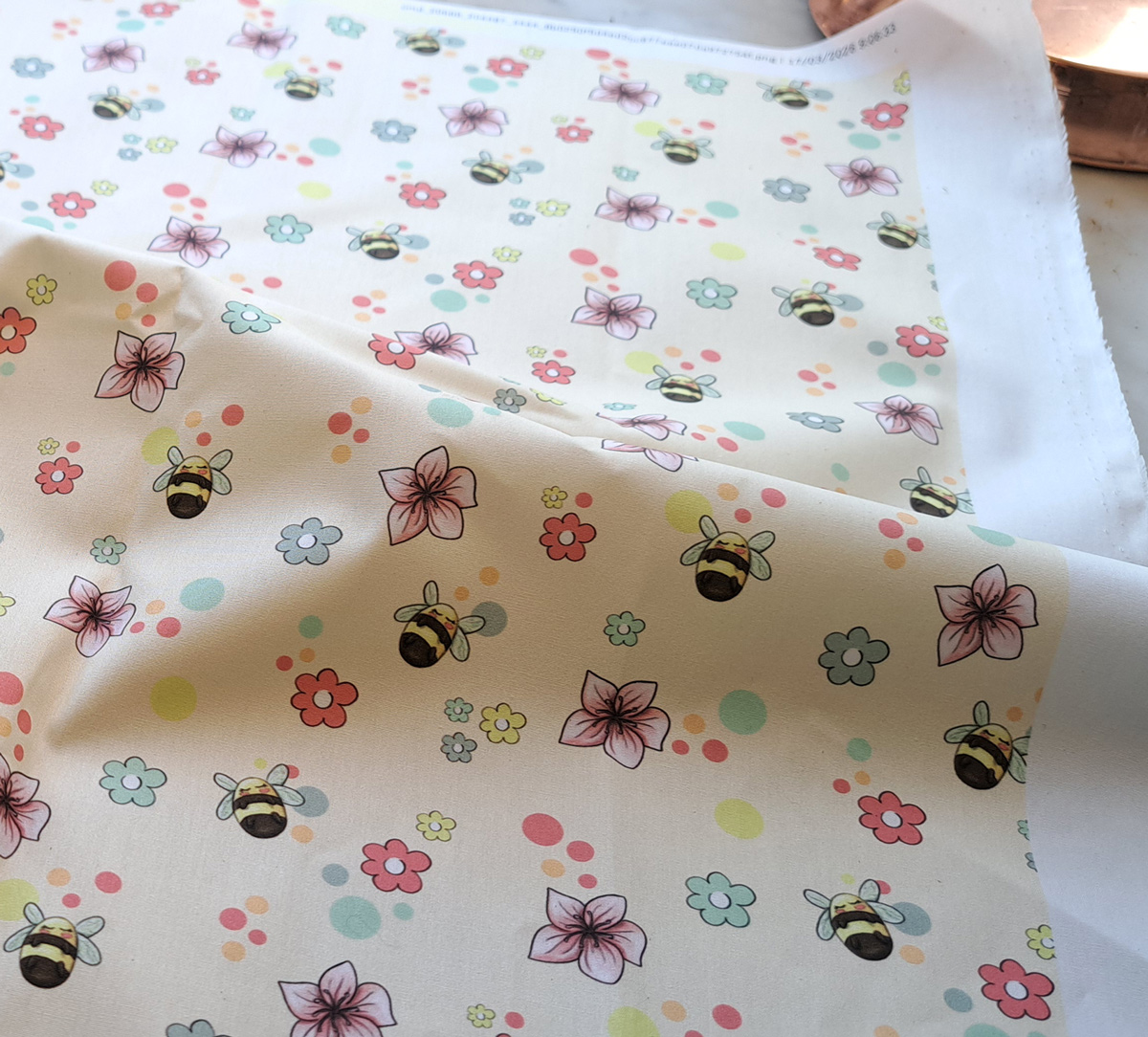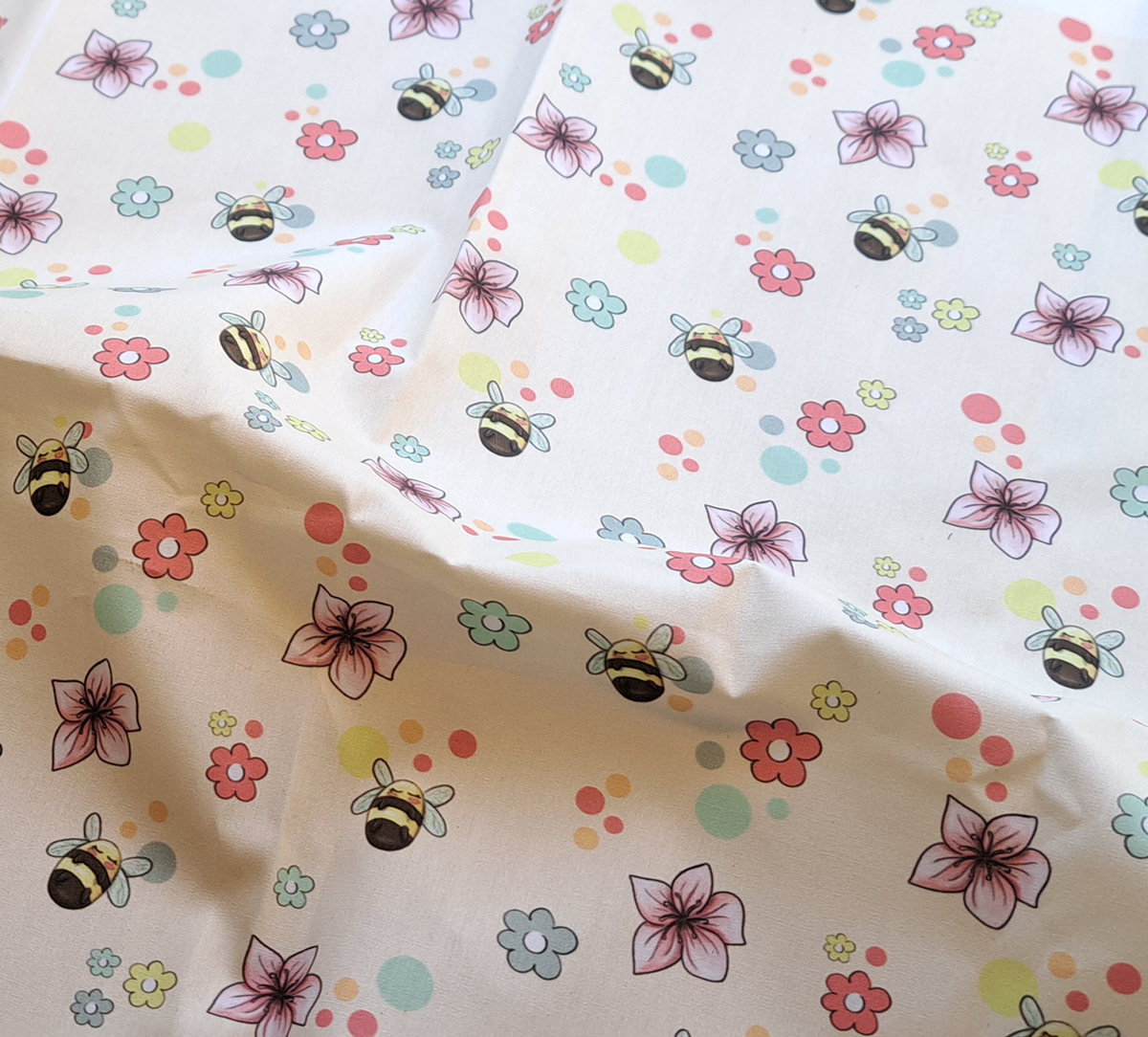 Nouveau – Popeline bio oeko-tex imprimé en France – Motif Les mini bourdons- Fond Ecru