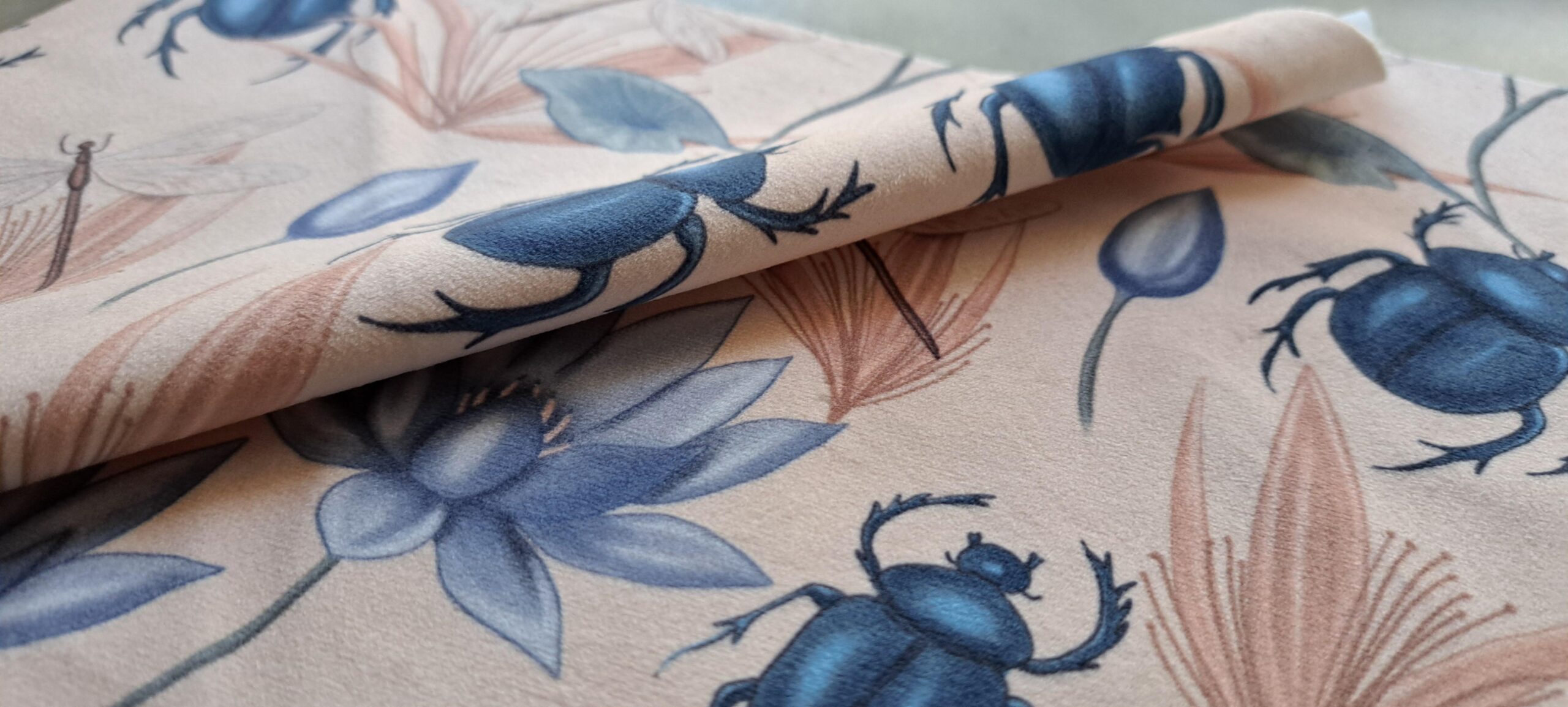 Soyez le premier à laisser votre avis sur “Velours oeko-tex imprimé en France – Motif Egypte Scarabées- Eclat du Nil – Fond Sable”